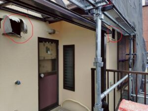 今回の工事ですが、換気フードの取り換えも同時に行いました。劣化していたり、風で飛んで無くなっている所もありました。