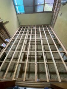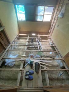 補強箇所を工事するのですが、お施主様のご希望で補強する部屋の畳を撤去してフローリングの工事を併せてする事になりました。
