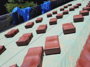 お昼近くになると瓦の表面は熱々で作業している職人さん達も熱中症に気を付けながらの作業になります