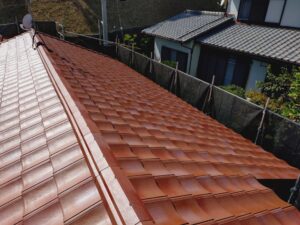 今回使用したのはケイミューの「ルーガ雅」。耐久性もよい軽量瓦になります。